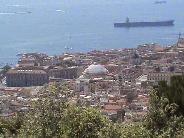 Invero, se si è dotati di buona volontà, tutto ciò che si vede dal belvedere lo si può raggiungere in pochi minuti scendendo lo scalone della Pedamentina, ma – se, come intuibile,  siamo pigri e vogliamo rimanere dove siamo  – è meglio rivolgere il nostro sguardo a destra ed osservare il Castel dell’Elmo, l’unico castello al mondo a forma esagonale e di cui scriverò prossimamente,  e la certosa di San Martino con la sua Chiesa a navata unica e sei cappelle con opere di Cosimo Fansago, De Ribera, Massimo Stanzione, Andrea e Domenico Antonio Vaccaro, Giovanni Lanfranco., Battistello Caracciolo, Francesco Solimena ed altri artisti vari.