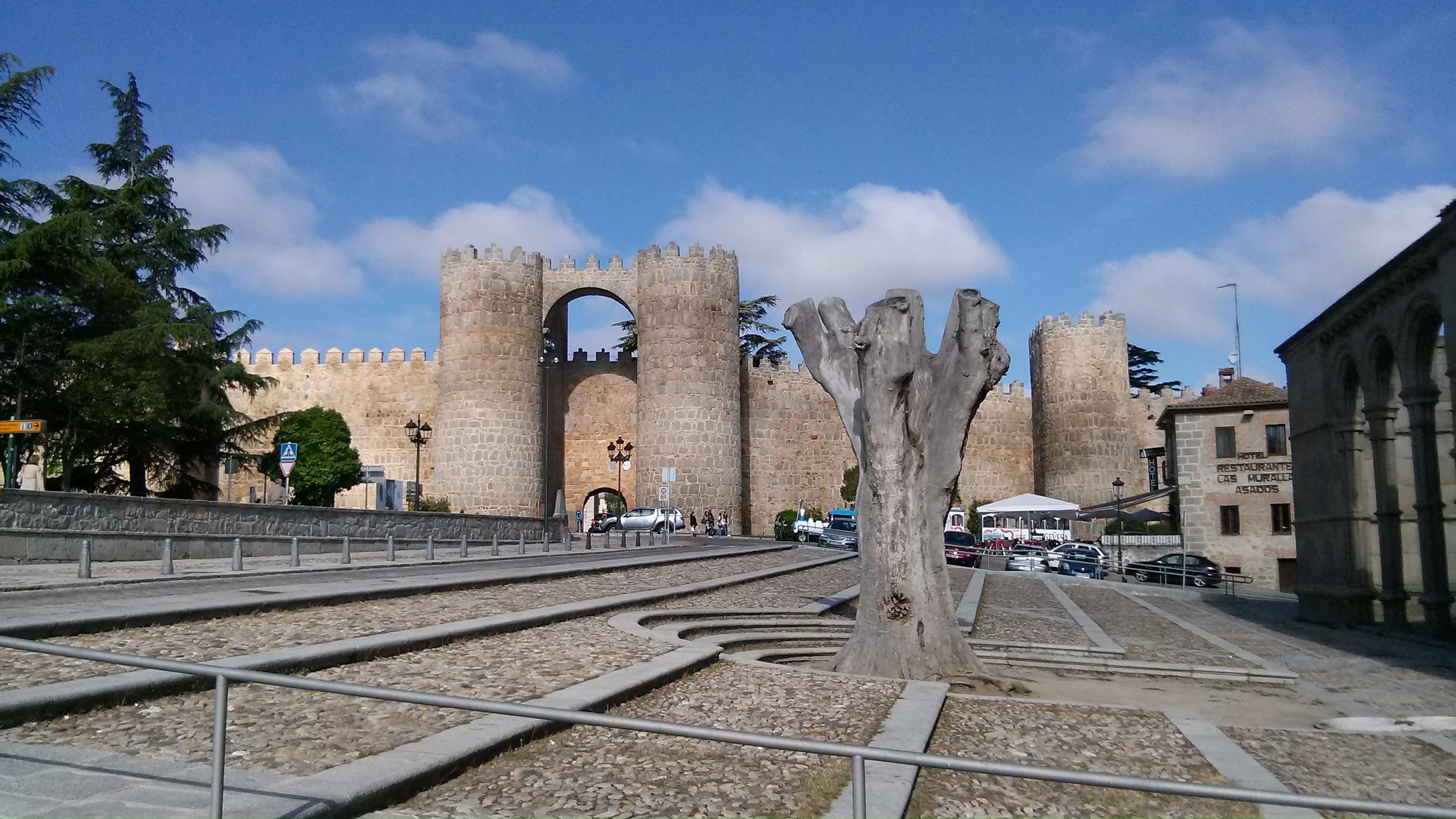 La mission quest’oggi è molto semplice: presentarsi all’appuntamento con il mio compagno di viaggio entro le 15.30. Solo che io sono a Salamanca, mentre l’altro avventore è a Madrid e non ho alcuna voglia di sorbirmi tre ore consecutive di autobus. Cosicché ho deciso di spezzare il tragitto ad Avila e di servirmi, in assenza di autobus, per la prima volta di blablacar.it. L’appuntamento è alle 9 con tal Jose in una piazza che non conosco e – siccome per attivare la luce della stanza dell’ostello è necessario inserire la scheda/chiave elettronica – decido di lasciare la mia per fare una gentilezza a Karola. Non l’avessi mai .fatto: l’ascensore non si attiva, non posso accedere alla stanza della colazione, non posso risalire e non mi resta che uscire mestamente promettendomi di non andare mai più al Revolutum Hostel. Jose, intanto, mi ha fatto preoccupare: non rispondeva al cellulare ed è arrivato in ritardo di mezzora, ma alla fine si è presentato e ha iniziato a parlare – senza mai prender fiato – di tutti i suoi hobby: il real madrid, il divano per dormire, la caccia, la pesca. E’ un tipo simpatico e sornione che lavora ad Avila e si serve di blablacar per pagarsi la benzina. Infatti, tra i passeggeri, c’è anche un altro ragazzo che torna nella sua città per il fine settimana. L’arrivo ad Avila è molto scenografico: le mura imponenti spezzano il fiume che cinge la città e regalano un panorama che permette di viaggiare nel tempo fino al medioevo.