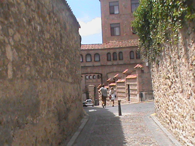 Riprendo, quindi, il mio tour con destinazione finale l’Alcazar, un palazzo fiabesco caratterizzato da torri a copertura conica rivestite d’ardesia. Si tratta di un unicum in Spagna, visto che questo stile appartiene più all’Austria/Germania. Orbene, benché l’edificio sia stato colpito da un incendio nel 1862, la visita è davvero eccezionale. Le stanze, tutto molto curate ed originali, si susseguono impressionando il visitatore tra quadri, arazzi, mobili intarsiati e pezzi di artiglieria. La visita all’Alcazar mi ha davvero entusiasmato, anche perché da qui si gode della più bella vista sulla valle di Segovia. In lontananza si intravedono anche i monasteri di Veracruz e di Santa Maria del Parral. Mi sarebbe piaciuto visitarle, ma sono fuori dal centro e non ho i tempi tecnici per raggiungerle. Per questo mi consolo con una breve passeggiata lungo le mura e nel barrio de lo judios (degli ebrei) fino a la puerta de San Andres.