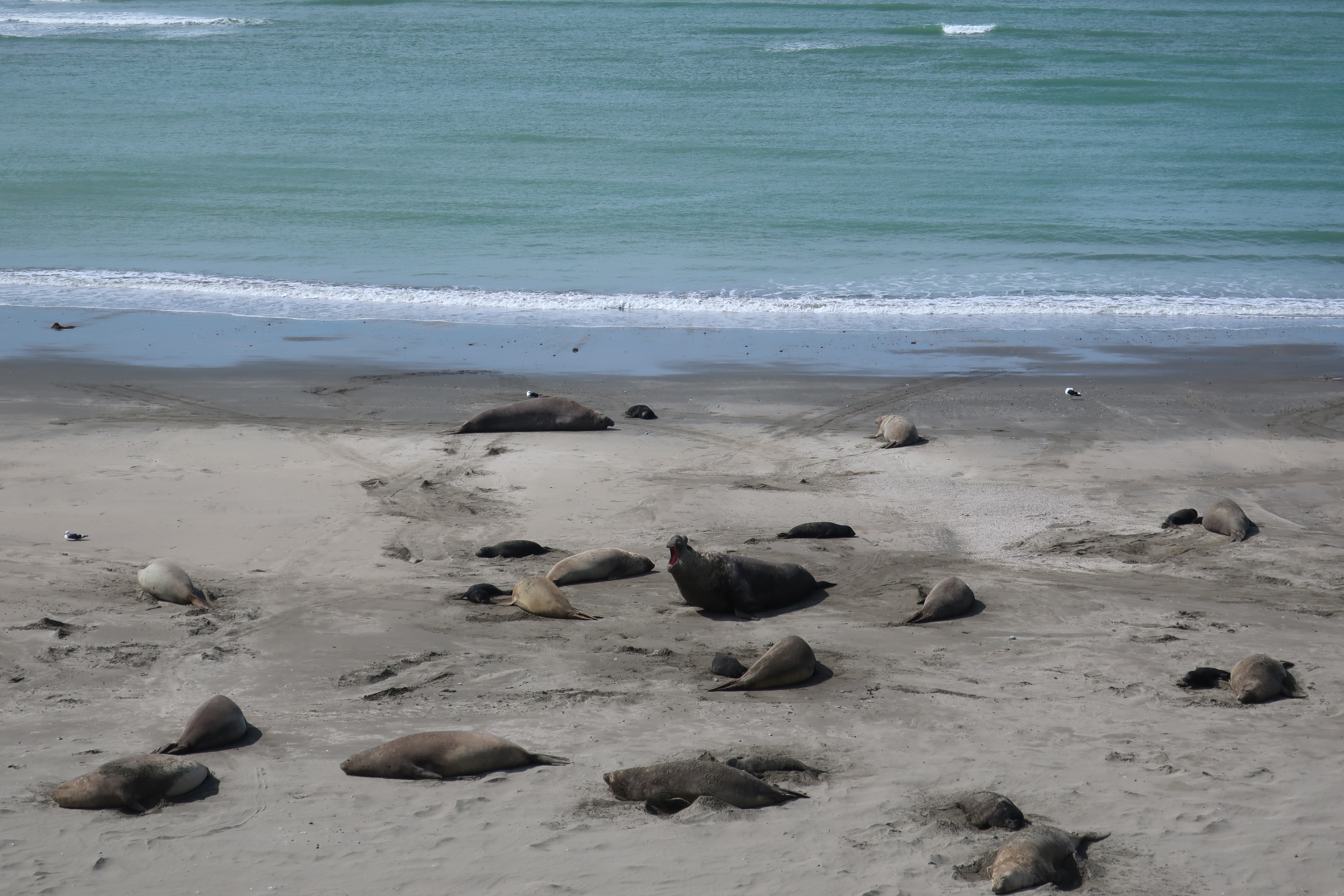 Tornarti sulla terra ferma, l’escursione continua verso Punta Norte per ammirare colonie di elefanti marini. Un percorso degradante lungo una falesia naturale, vi porterà quasi sulla spiaggia di Punta Norte densamente abitata da questi giganti e goffi animali marini che pensano circa 1.800kg. Vi sembrerà di poterli quasi toccare con il palmo di una mano. Seppur l’elefante marino è stanziale nella Penisola di Valdès, per poterlo ammirare dovrete conoscere il suo ciclo vitale. Esso, infatti, trascorre la maggior parte della sua vita nell’oceano, stabilendosi sulla terraferma durante la stagione riproduttiva e per allevare i piccoli. Prima di entrare nel merito degli usi e consumi degli elefanti marini, una piccola nota…. Questi animali sono “poligami”. Un maschio alfa può arrivare a costruire un harem di ben 100 femmine! Ciò premesso, apparirà tutto più chiaro. A fine agosto, i maschi di elefante marino giungono sulla spieggia per scontrarsi e stabilire le gerarchie del dominio con feroci combattimenti. Poche settimane dopo, invece, giungeranno le femmine, già incinte, per dare alla luce i propri piccoli che saranno allattati per il proprio primo mese di vita. Al termine di questo breve periodo, i cuccioli saranno totalmente abbandonati dalle mamme e dovranno iniziare a cavarsela da soli. Già dopo le prime 2 settimane dal parto e durante gli ultimi giorni di allattamento, inizia quindi il periodo dell’accoppiamento. A mio avviso una vera e propria fatica per il maschio alfa! Pensate allo stress di dover allontanare continuamente i maschi esclusi dalla riproduzione e di tutelare il proprio harem composto da 50-100 femmine, il tutto senza nutrirsi e perdendo circa 15 kili al giorno!! Una volta gravide, le femmine di elefante marino sono pronte per tuffarsi in mare in cerca di cibo e torneranno sulla terraferma solamente 11 mesi dopo, per partorire, allattare ed accoppiarsi nuovamente.  Per farla breve, la vita dell’elefante marino è dura assai. Se sei femmina, sei perennemente incinta e, quando non lo sei, allatti e ti accoppi con il maschio più forte, se sei maschio, devi combattere continuamente per proteggere il tuo harem, se sei cucciolo, vieni abbandonato dopo il tuo primo mese di vita e sarai costretto a sopravvivere da solo.