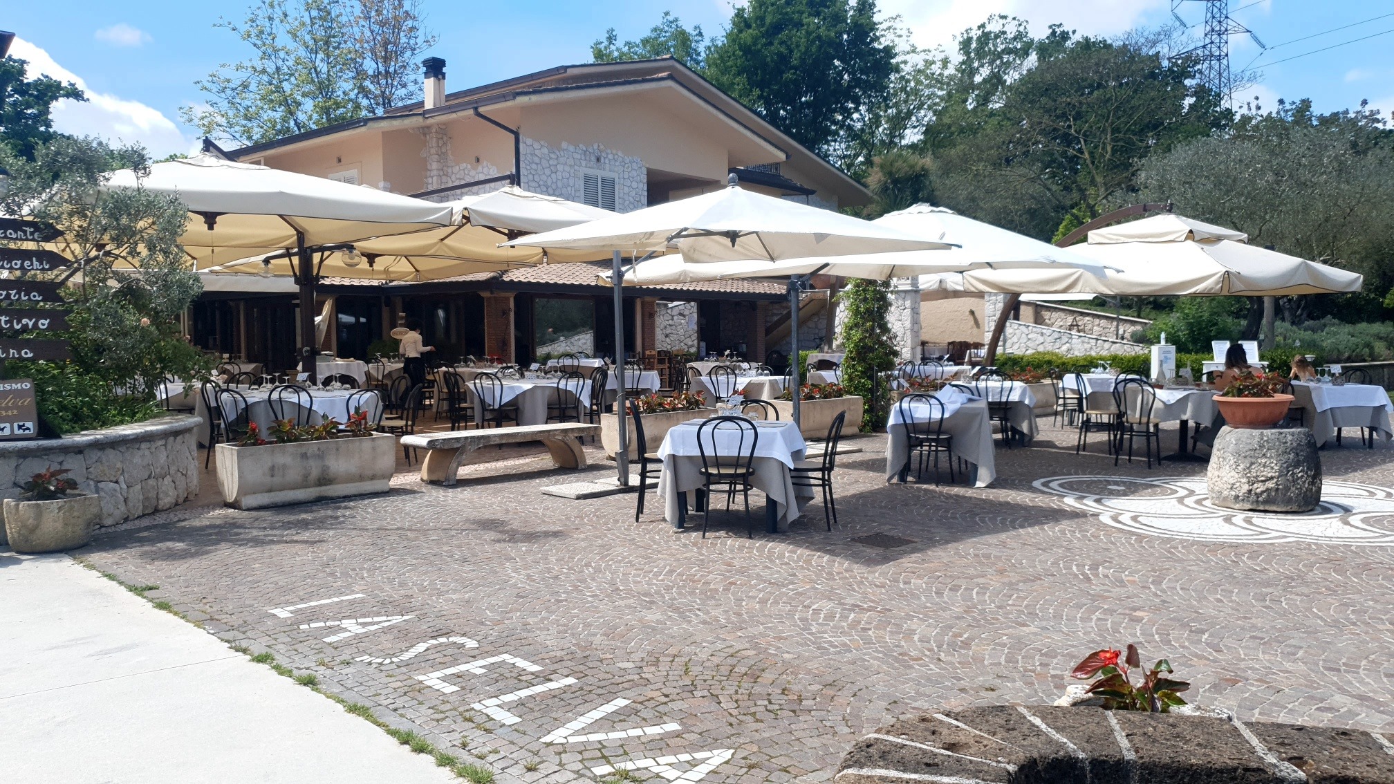 In mezzo alla proprietà c’è il ristorante con una sala al chiuso e, durante la bella stagione, con numerosissimi tavoli all’aperto.