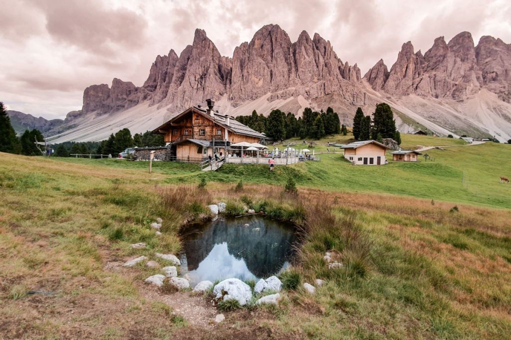 Prima di lasciare le montagne, voglio dedicare l’ ultima escursione alle Odles, raggiungibili anche dalla val di Funes, per intenderci la valle di Messner. Il punto di partenza per questa escursione piuttosto facile è a Zannes, dove peraltro vi sono delle malghe molto belle. Qui è possibile parcheggiare facilmente la propria vettura. Il percorso ad anello permette di godere di una delle più belle vette delle Dolomiti che segnano peraltro il confine tra la val di Funes e la val Gardena. Se siete fortunati, potrete godere di pareti merlettate che si ergono su boschi regalando uno spettacolo di rara bellezza. Chi scrive non lo è stato invece appieno, avendo beccato una giornata incerta. Ha però comunque goduto di panorami mozzafiato e si prati rigogliosi. Il percorso n. 6 segue fino a San Zeno per poi risalire il sentiero Adolf-Munkel fino al bivio per Malga Geisler. In cima le malghe “in festa” accolgono – anche con giostrine – gli escursionisti più affamati.