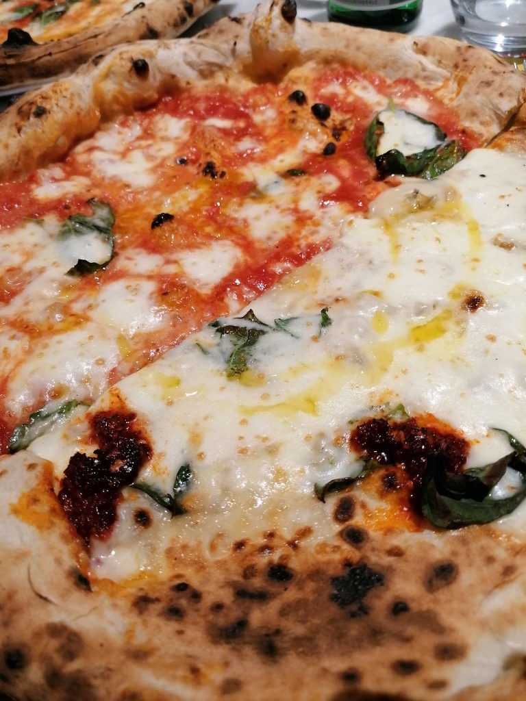 Dopodiché ci sono le margherite in 7 versioni diverse ( in cui sostanzialmente cambia il pomodoro!) e altrettante pizze di mare. Quanto a quest’ultime, sappiate che io ho dei preconcetti e provare la pizza con il baccalà non rientra tra le miei priorità. Per carità, si può proporre, ma è giusto limitare l’offerta a 2, massimo 3 “pizze di mare.”