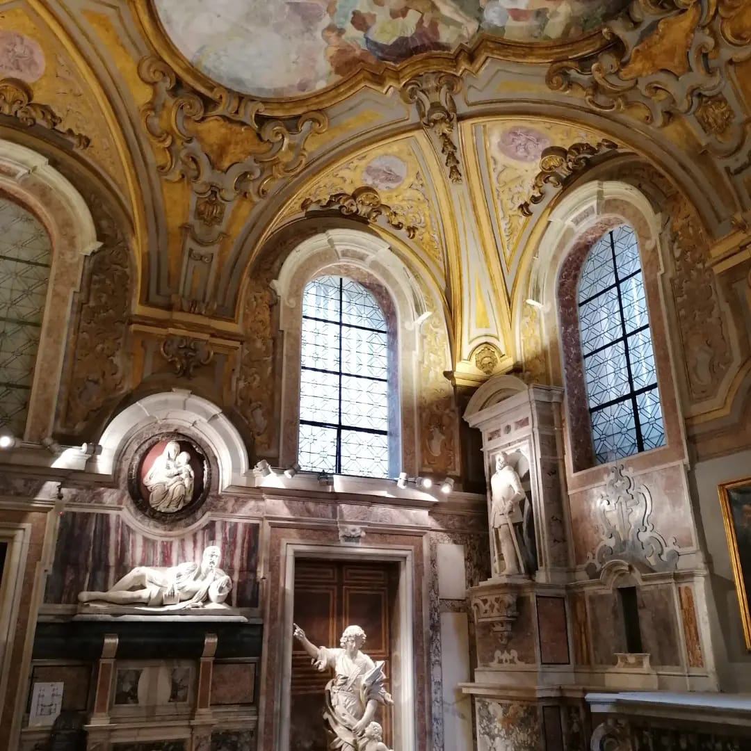 Ciò che mi è piaciuto di più è, tuttavia, il comunichino delle Monache, dove si vede la mano dell’architetto Ferdinando Sanfelice e dove il mix tra scultura, architettura e pittura – cioè tra le 3 arti decorative – crea un connubio perfetto.