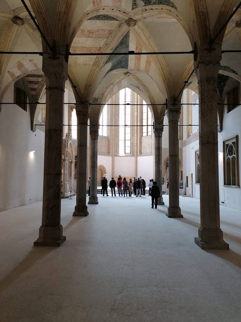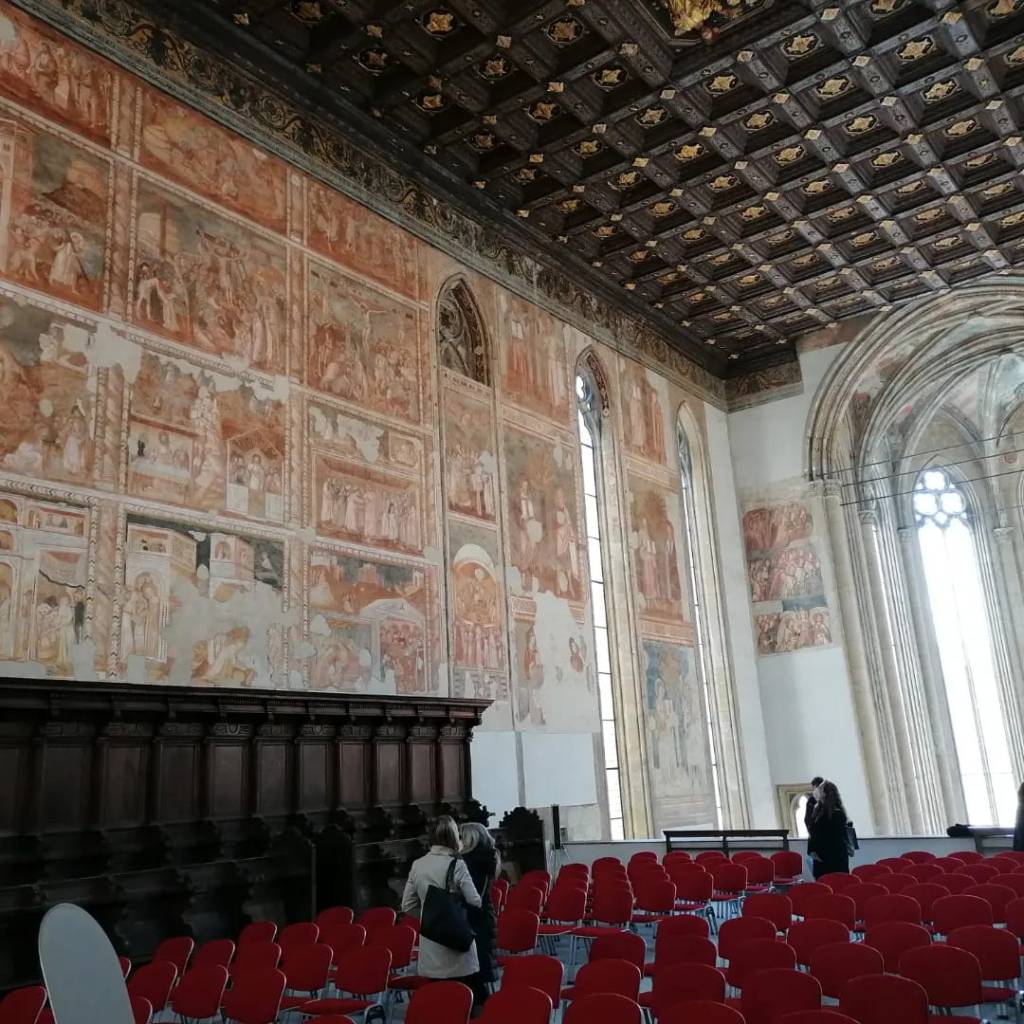 Ciò considerato, il comunichino delle monache era sostanzialmente il locale in cui avveniva il contatto tra la zona di clausura e quella di accesso al pubblico. Poco oltre si accede poi al piano superiore dove si possono apprezzare i matronei da cui le suore seguivano le cerimonie religiose. Abbiamo poi il coro con vista sulla volta e l’abside.
