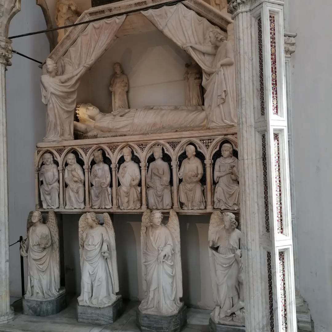 Lo stesso però venne “adottato” da Maria D’Ungheria, moglie di Re Carlo II d’Angiò, e così – a partire dal 1306 – si provvide alla ricostruzione della Chiesa in stile gotico. Il legame tra la regina e il monastero fu tale che la stessa dispose che il suo sepolcro fosse situato in questa Chiesa. L’opera, tuttora visibile, fu realizzato addirittura da Tino di Camaino.